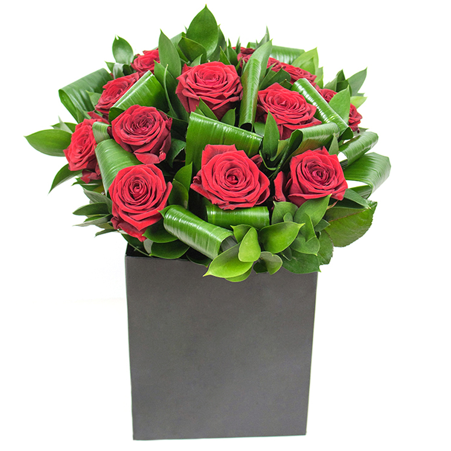 Introduce beauty and elegance into your home with our Beautiful Red Rose Arrangement. This exquisite bouquet features vibrant red roses, complemented by rich aspidistra leaves and delicate ruscus, creating a harmonious and eye-catching display.