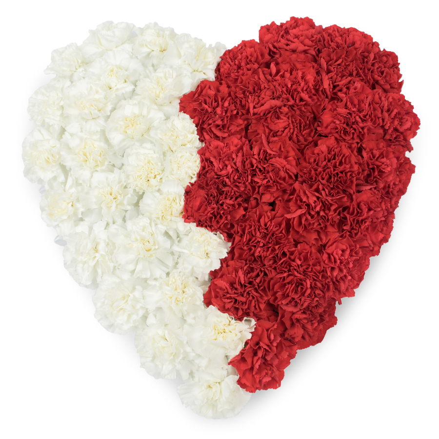 Handy Flowers presents an artfully designed bouquet, where the vibrant hues of red and white carnations form a heart shape that tells a story of love and elegance. Each flower is individually hand-picked to guarantee lasting freshness and an explosion of color. The intricate design exemplifies luxury and care, making it the ideal gift for any special occasion.